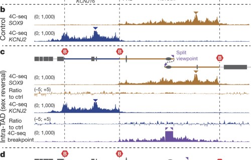 SOX9 is a developmental transcription cistron with functions in chondrocyte differentiation and male sexual activity determination, and genomic duplications in the SOX9 locus have been linked to various man diseases. Stefan Mundlos and colleagues use chromosome conformation capture techniques to await at the event of such duplications on the chromatin partitioning units termed topologically associated domains (TADs) that environs the mouse Sox9 locus. They observe that although TADs are stable genomic regulatory units, they can exist rearranged by structural genomic variations to create novel chromatin regulatory domains. Duplications are more often than not thought to confer their phenotypic consequence through an increase in gene dosage, just these results show how duplications tin can also affect college order chromatin structure.