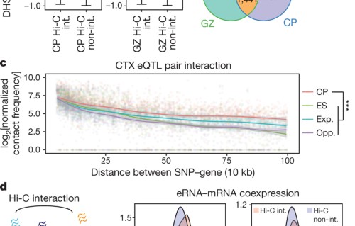 Chromatin is organized into hierarchical 3-dimensional structures that are thought to have a role in gene regulation past defining the functional units within which cis-regulatory elements collaborate with their target genes. Here, Daniel Geschwind and colleagues use the Hi-C technique to generate loftier-resolution 3-dimensional maps of chromatin contacts in human developing brain. By integrating the How-do-you-do-C maps with other datasets they identify novel enhancer–promoter contacts, many of which are associated with human cerebral function. They also integrate these chromatin contact maps with not-coding variants identified in schizophrenia genome-wide association studies to propose novel candidate adventure genes and pathways for schizophrenia.