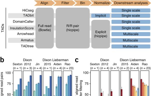The three-dimensional (3D) organization of eukaryote chromosomes regulates genome function and nuclear processes such as Deoxyribonucleic acid replication, transcription and DNA-damage repair. Experimental and computational methodologies for 3D genome assay have been rapidly expanding, with a focus on high-throughput chromatin conformation capture techniques and on data assay.