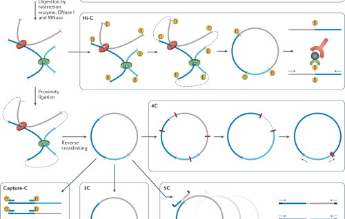 Ramani et al. depict a protocol for in situ DNase Hi-C equally an alternative to traditional Hello-C methods that employ restriction enzymes. The use of DNase I for chromatin digestion circumvents the resolution limit imposed when relying on genomic restriction sites.
