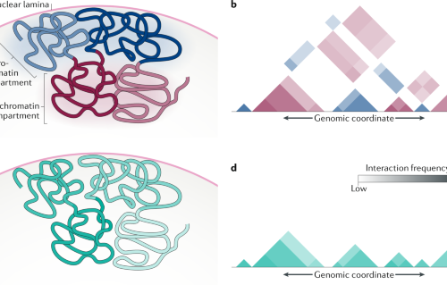 Genome-wide mapping of chromatin contacts reveals the structural and organizational changes that the metazoan genome undergoes during cell differentiation. These changes involve entire chromosomes, which are influenced by contacts with nuclear structures such equally the lamina, and local interactions mediated by transcription factors and chromatin looping.